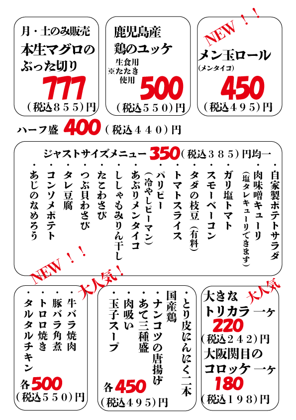 【各500(税込550)円メニュー】